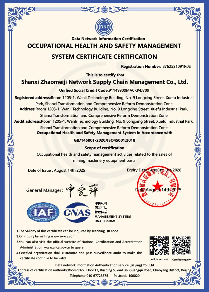 ООО «Шаньсийской сети поиска угольного оборудования Управление цепями поставок » — это китайская компания-платформа в сфере управления цепями поставок, специализирующаяся на отрасли оборудования для угольных шахт. В её состав входят три дочерние и зависимые компании, занимающиеся производством и сбытом шахтной техники. Основанная в сентябре 2019 года, компания самостоятельно разработала и управляет платформой «Сеть поиска угольного оборудования» (www.zhaomeiji.com), позиционируя её как отраслевую интернет-платформу для индустрии шахтного оборудования. Её деятельность сосредоточена на модернизации отрасли оборудования для угольных шахт по всей стране по модели «Интернет+», с основным акцентом на B2B-транзакциях запасных частей для шахтного оборудования и материалов для угольной промышленности, а также на стимулировании здорового развития экосистемы интернета в отрасли горного оборудования через агрегированные закупки в цепях поставок и финансовые услуги для цепей поставок.